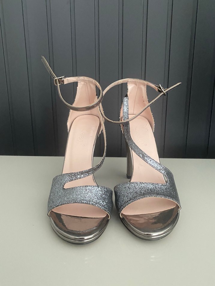 Gümüş renk 1 kez kullanıldı çok rahat deformesi yoktur 37 numara abiye ayakkabı iade yoktur #abiye#ayakkabı#topuklu#gümüş#sandalet#topuklu#gri#platform#gelin#pembe#antrasit