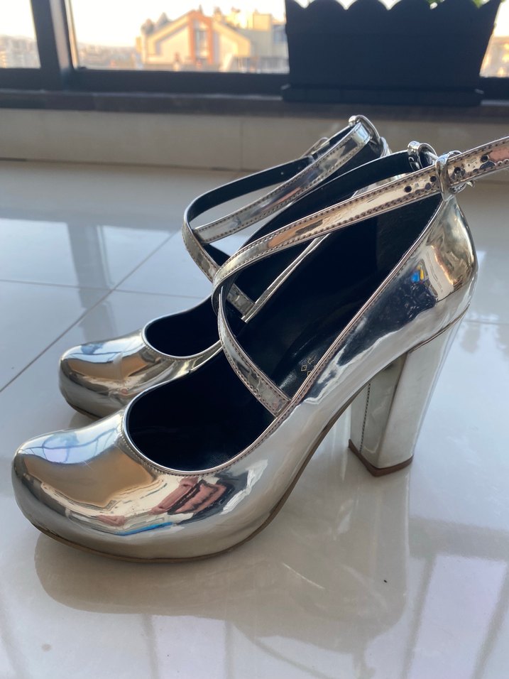 Gizli platform topuklu ayakkabı. 11 cm arka topuk, 2 cm ön taban. Bir kere giyilmiştir. Fotoğraflarda görüldüğü gibidir. Dolabımdaki diğer ürünlere göz atmayı unutmayın