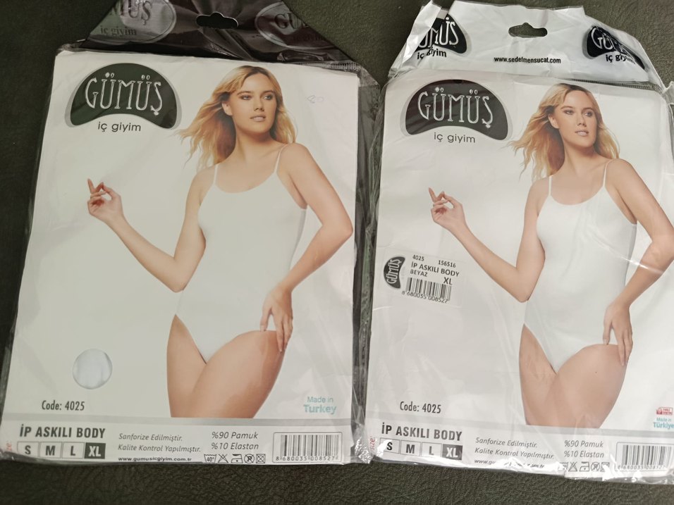 Gümüş markasına ait beyaz ip askılı kadın body, %90 pamuk ve %10 elastan içerir. Kısa kesim ve normcore tarzıyla rahat bir iç giyim ürünüdür.
