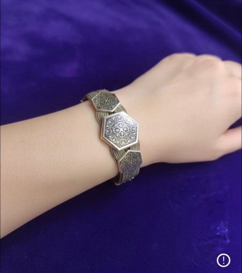 Antika Gümüş 925 ayar mükemmel bileklik eski gumuslerden. Uzunluğu 20 cm ağırlığı 58 gr. Düşük teklifleri kabul etmiyorum Bu bilekliği alana yanına küçük gümüş ayna hediyem