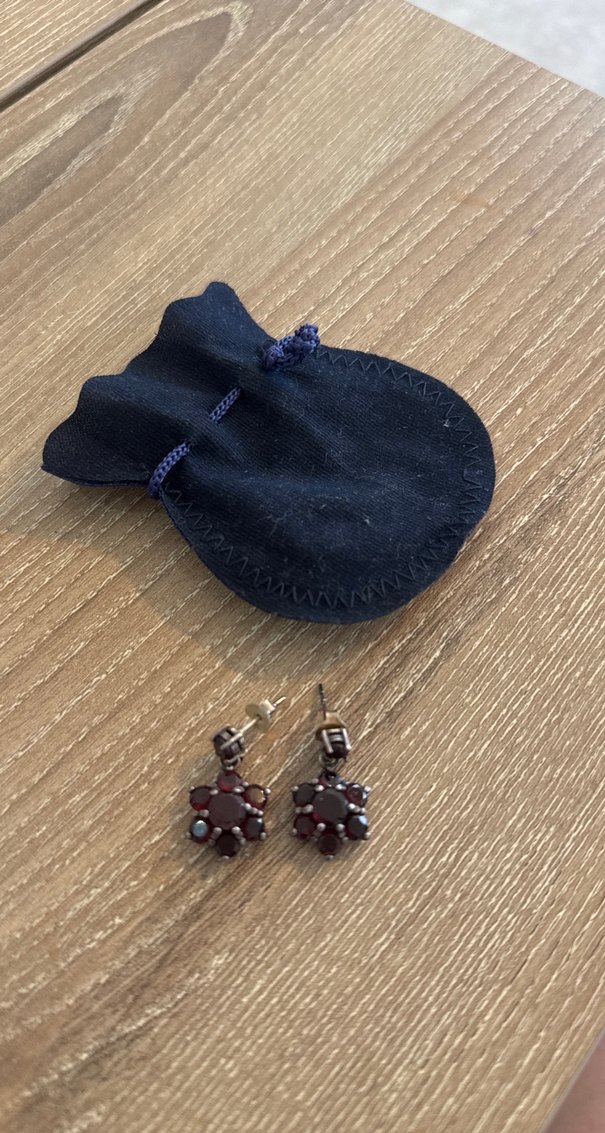 Bordo boncuk ve işlemeli detaylara sahip bohem tarzda kısa küpeler. Küçük siyah kese ile birlikte gelir. Günlük kullanım için uygundur.
