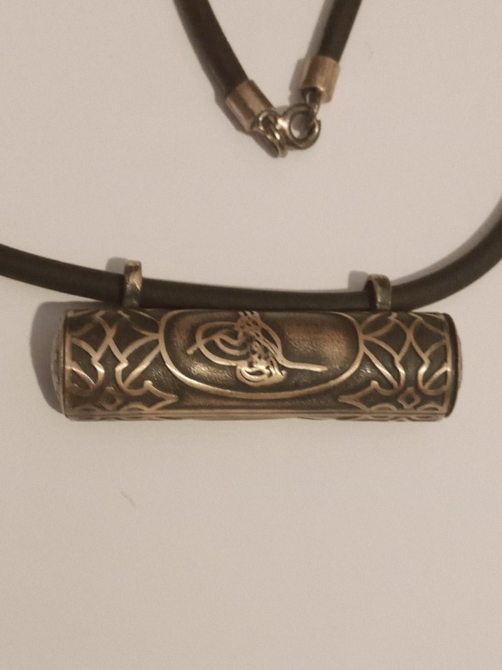 Gümüş Silindir Osmanlı tuğralı Vintage bohem kolye. Günlük kullanım için uygundur.