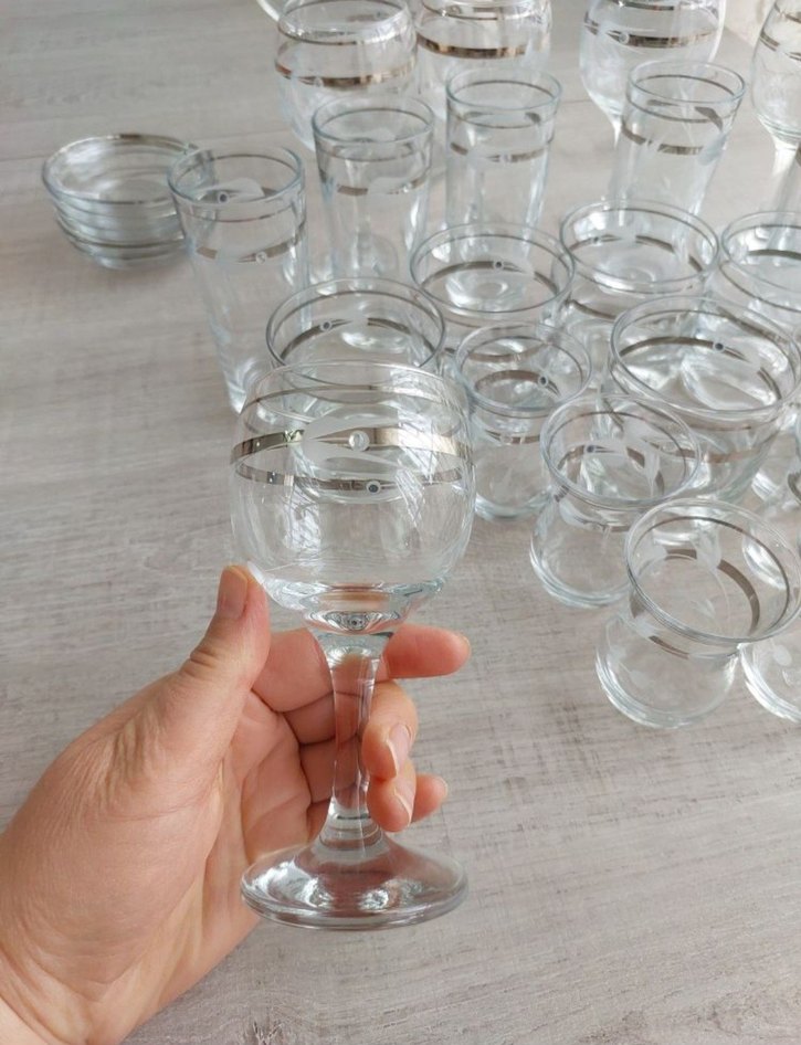 Gümüş detaylı taş işlemeli 31 parça sürahi kadeh takımı hiçkullanılmadı, içecek servisi için uygundur.