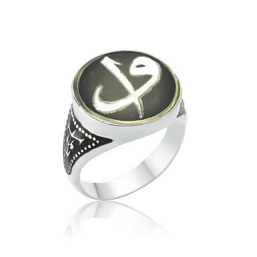 925 ayar gümüşten imal edilmiştir. Gümüş üzerine oksit kaplama yapılmıştır. Oksit kaplama yapılan yüzükler parlaklığını uzun süre muhafaza eder. Tüm erkek yüzüklerde olduğu gibi gümüş elif vav erkek yüzük de el emeği ile üretilmiştir. Gümüş ve değerli taşlar nedeniyle ürün ağırlığında ± %10 sapma olabilmektedir. Ort. Ağırlık: 8.50 gr. Ölçüler:18-19-22