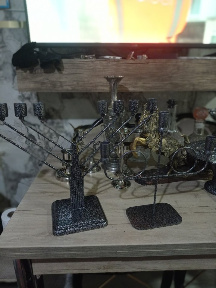 Bu set, detaylı desenlere sahip siyah metal mumluklar içerir. Ağaç şeklinde ve fil figürlü mumluklar dekoratif bir aydınlatma sunar. ️