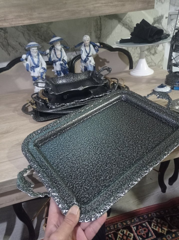 benekli gümüş eskitme tepsi servis için uygun ve dayanıklı tasarıma sahiptir. ️