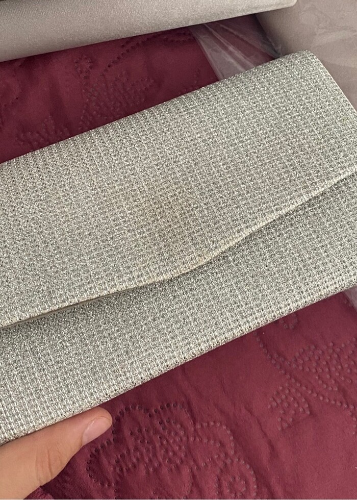 Gümüş gri, simli, abiye çanta. Bir hasarı yoktur