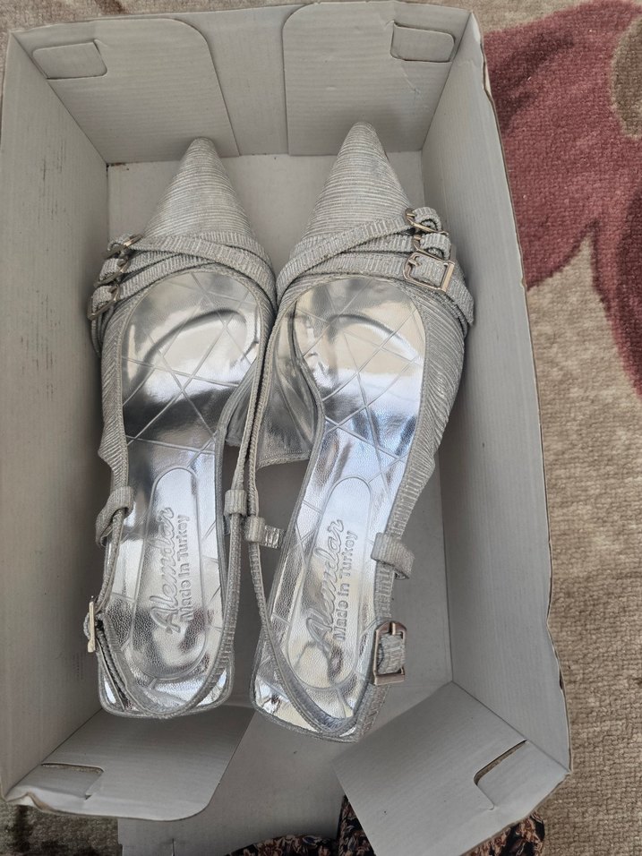 gümüş gri topuklu ayakkabı 38 numara