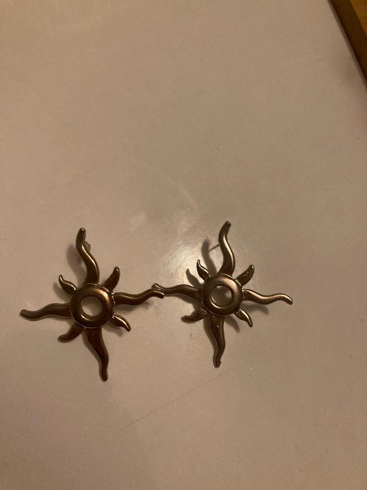 bi süre kullanıldı sağlam Parlak gümüş renkte, soyut güneş figürlü, tokalı kısa uzunlukta bohem tarzda minimalist küpeler.