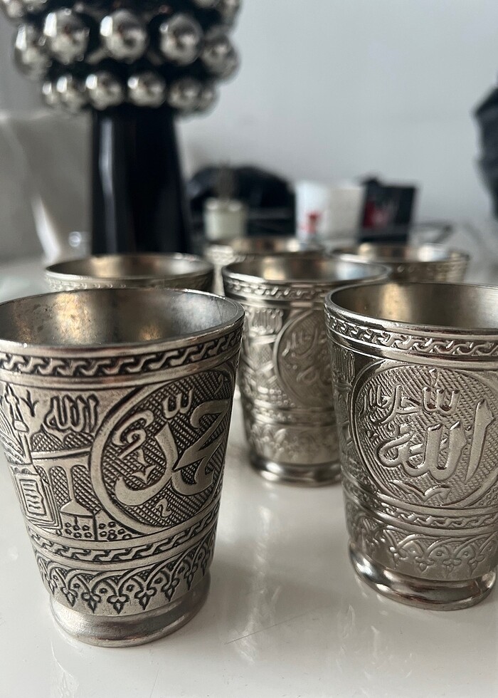 Gümüş Allah Muhammed yazılı bardak takım 6lı