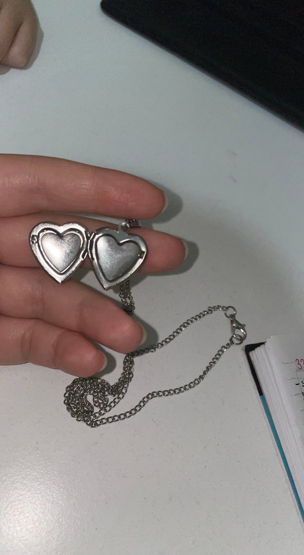 Gümüş renkli çelik açılır kapanır Kalpli Kolye