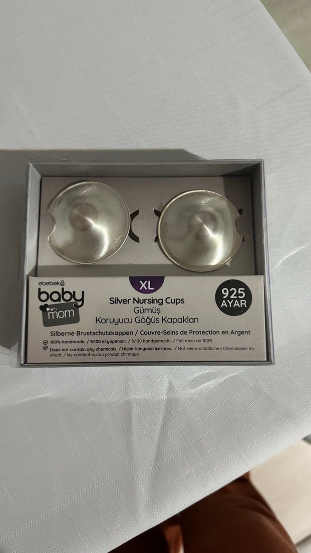 925 ayar gümüşten yapılmış, Kendim doğumdan önce aldım fakat 1 kez bile kullanmadım sıfır kutuludur