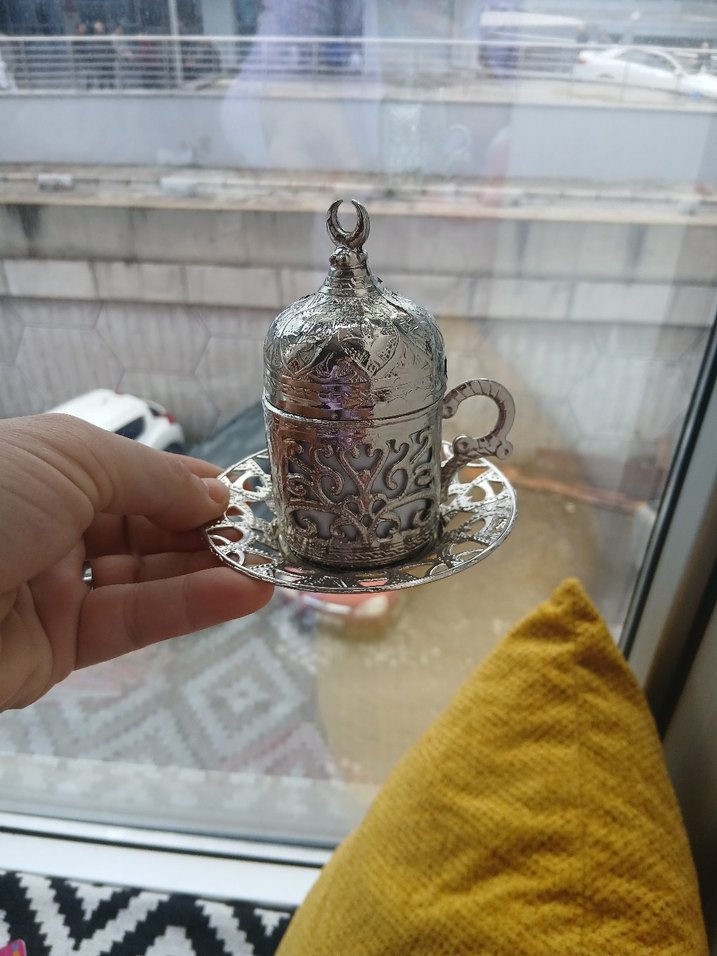 Gümüş Kapaklı İşlemeli Türk Kahvesi Fincanı Seti