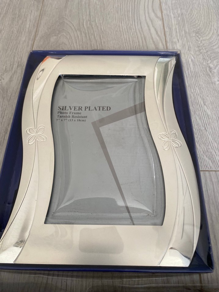 Dalgalı tasarımlı ve çiçek detaylı gümüş kaplama fotoğraf çerçevesi. Kararmaya dayanıklıdır, boyutu 7x5 inç tekli fiyatıdır arzu eden üçünü de alabilir tek alabilir