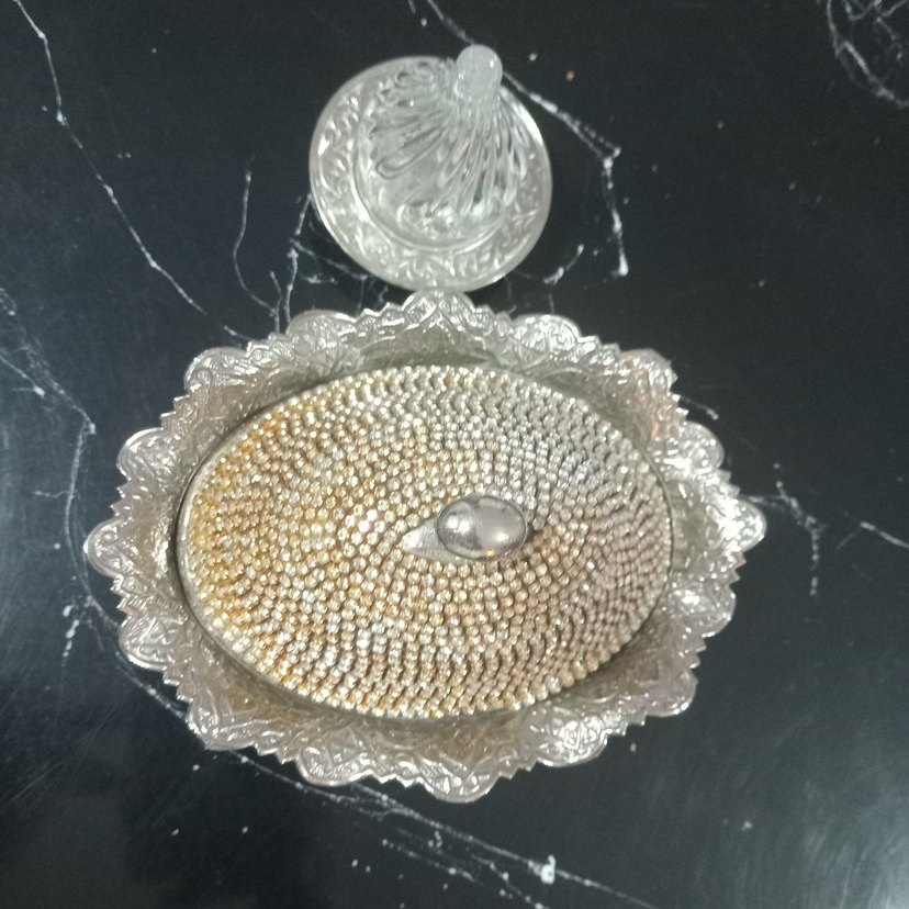 Gümüş kaplama İkramlik Taşli kapakli 4 Parça Vintage Ikramlik