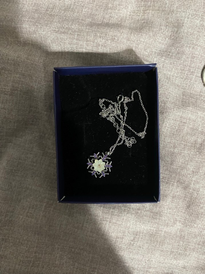 Kısa uzunlukta, detaylı zincirli ve mor desenli ucu olan bohem tarzda kadın kolyesi, romantik akşamlar için uygun. Karpınski markasıdır