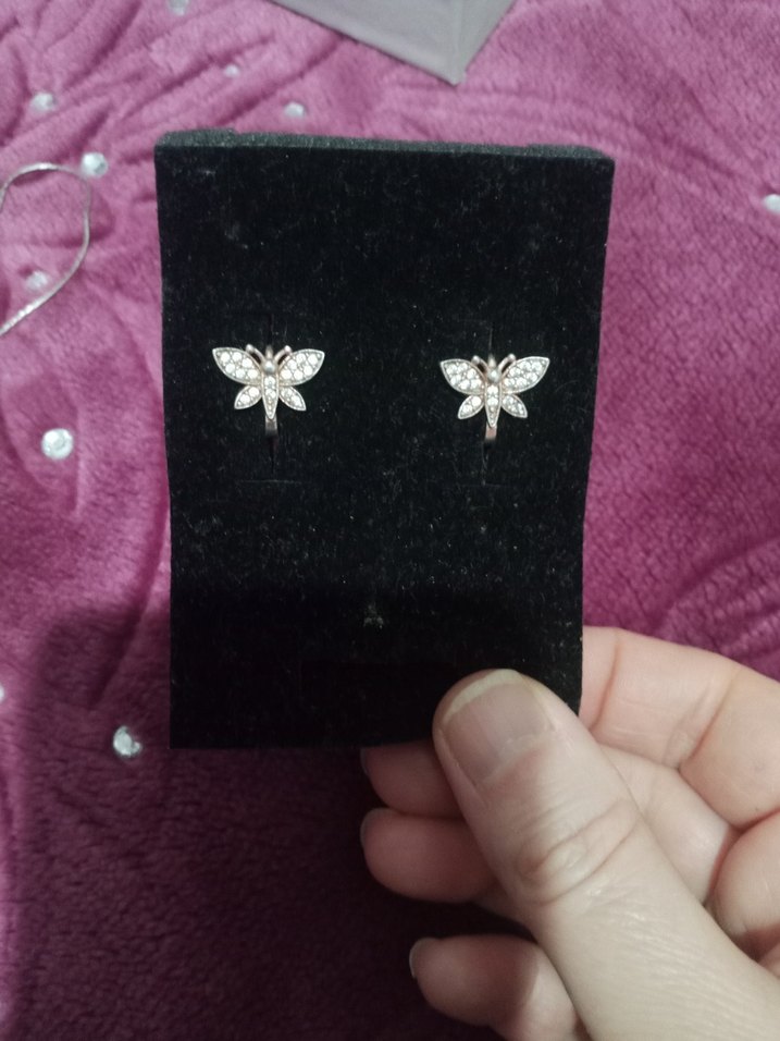 Mini beyaz kelebek küpeler, parlak payetlerle süslenmiş, minimal ve gotik tarzda klasik şıklık sunar. Romantik akşamlar için uygundur.