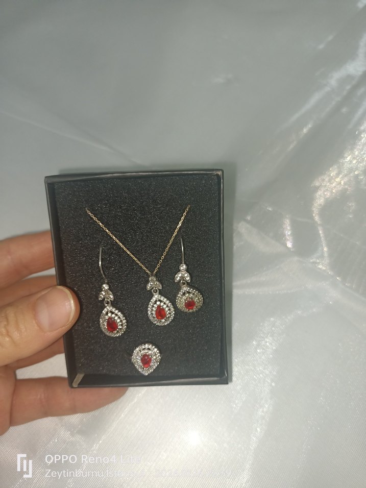 Bu kadın takı seti, koyu kırmızı boncuk detayları ve modern klasik tarzıyla öne çıkar. Kolye, küpe ve yüzükten oluşur, romantik buluşmalar için uygundur.