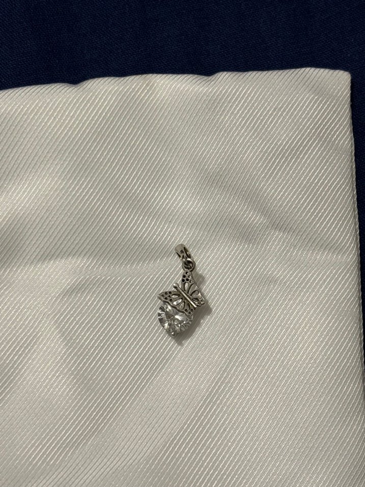 925 ayar , kelebek desenli ve parlak beyaz baskılı kadın kolye ucu. Klasik zarafeti ve Paris sokak stilini yansıtır.