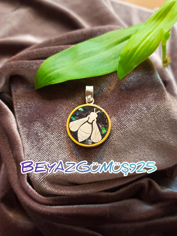 925 AYAR GÜMÜŞ KOLYE Tamamen Elişi Siyah sedef mozaik işçiliğe Günlük kullanım ve hediye için uygundur