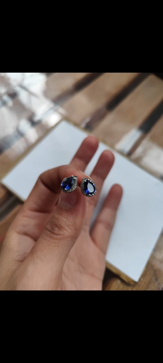 Romantik akşamlar için uygun, lacivert payetli mini damla şeklinde modern klasik küpeler, hafif desenli detaylarla. GÜMÜŞTÜR. Arkası kayboldu ona göre alım yapınız.