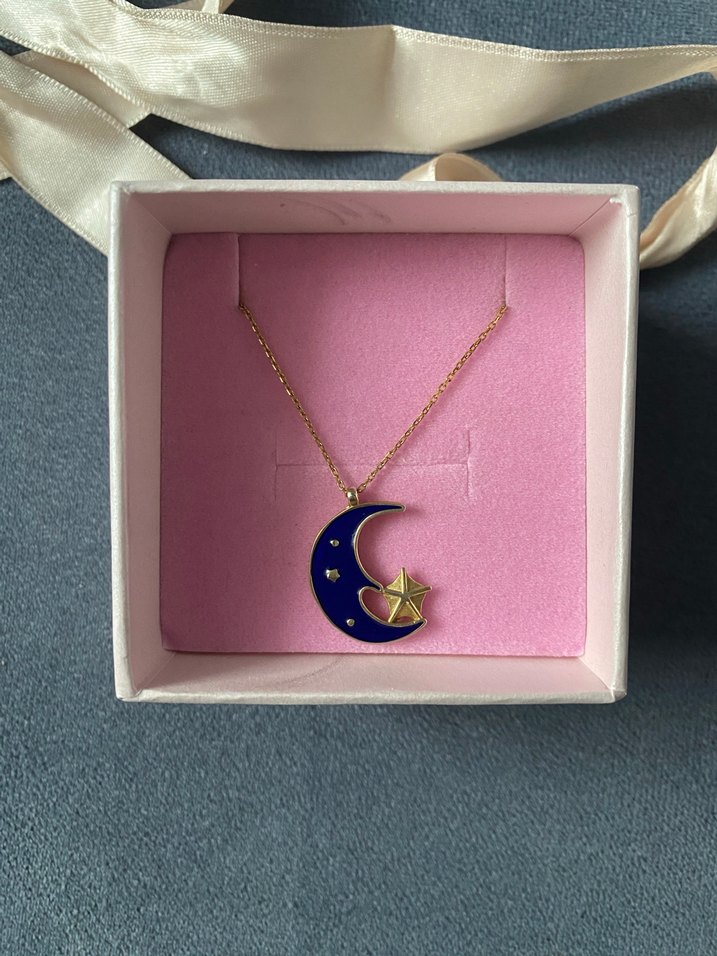 Gümüş Mavi Ay ve Yıldız Mineli Kolye