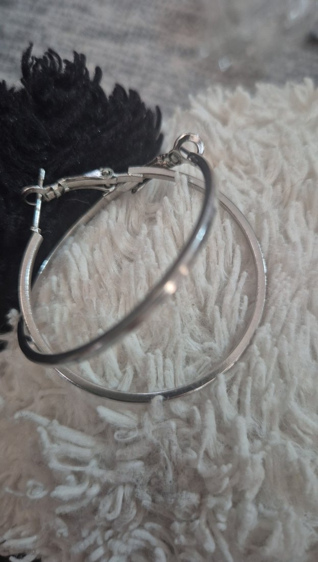Gümüş düz yüzeyli halka küpeler, günlük kullanım ve sokak stili için uygundur. Normal midi uzunluğunda, rahat bir hava katar.