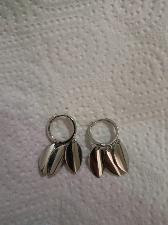 Günlük kullanıma uygun, parlak gümüş renkte, kısa uzunlukta, püsküllü Çelik küpe.