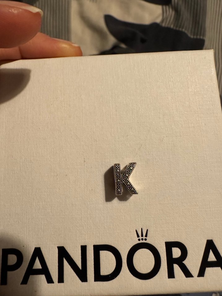 Beaded dokulu gri Pandora 'K' harfi charm. Eski erkek arkadaşımın baş harfi. (Ayrıldık)