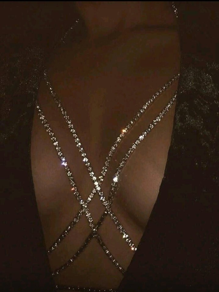 gümüş parlak, taşlı çapraz vücut zinciri, cesur ve gösterişli gotik parti stilleri için uygundur. ✨