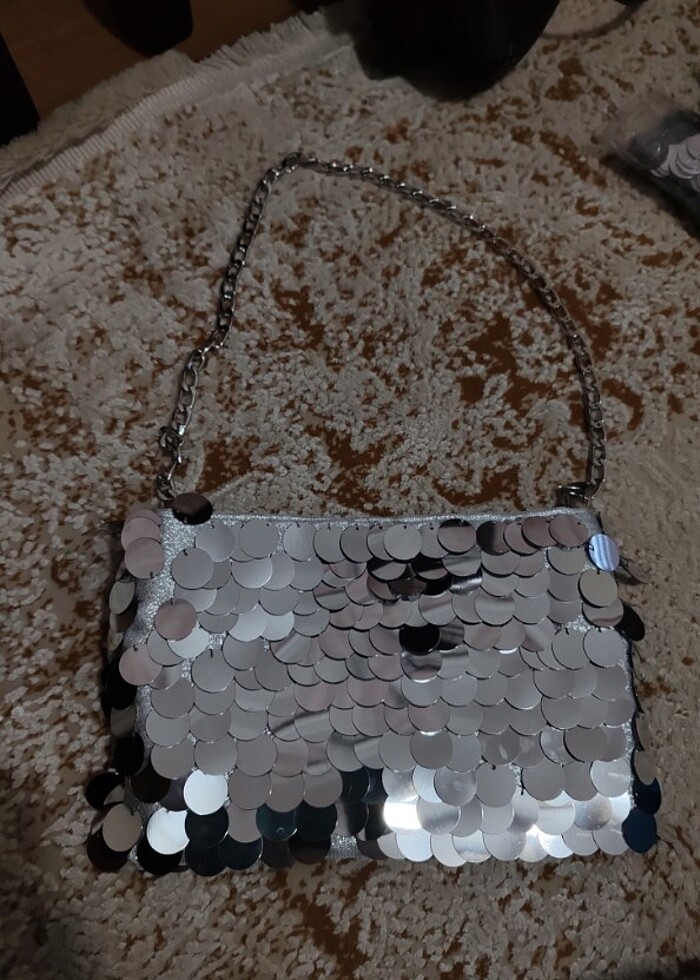 gümüş pullu payet çanta