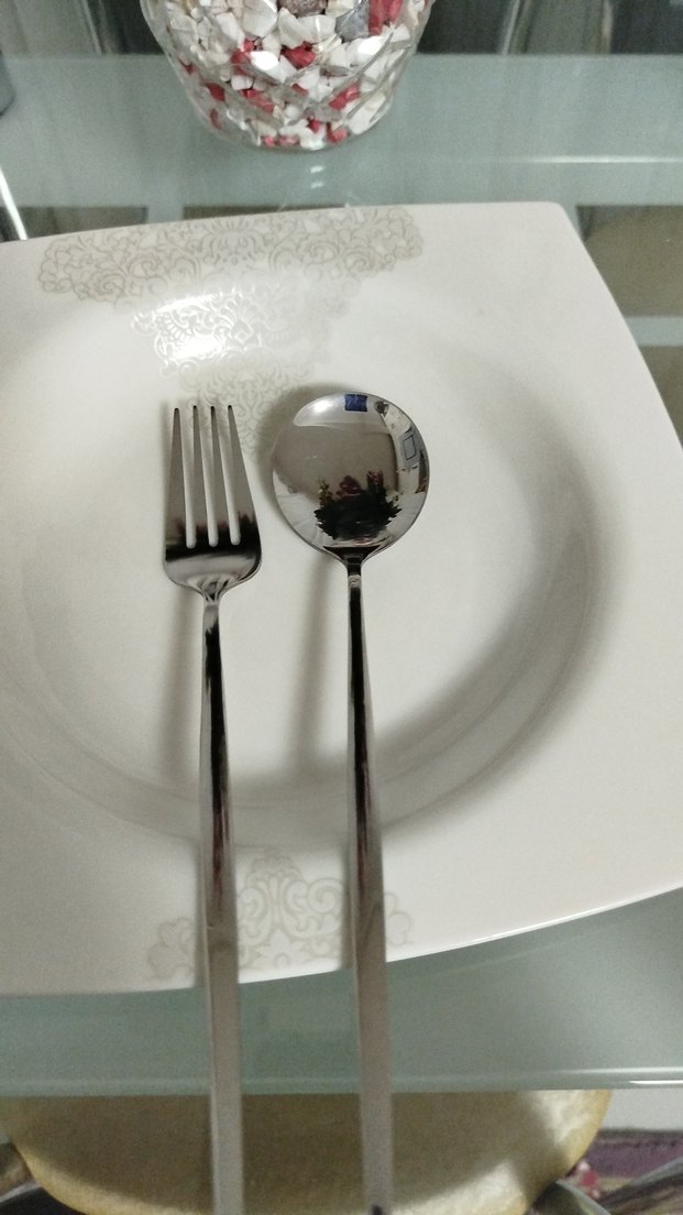 gümüş rengi tabakla birlikte paslanmaz çelikten yapılmış çatal ve kaşık seti. Basit ve şık tasarıma sahiptir. ️12 parça