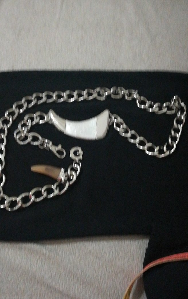 Yeni ağır gümüş rengi çok güzel zincir ve bir büyük bir küçük fil dişi şeklinde tasarlanmış kemer boy 114 cm resimde gördüğünüz gibidir