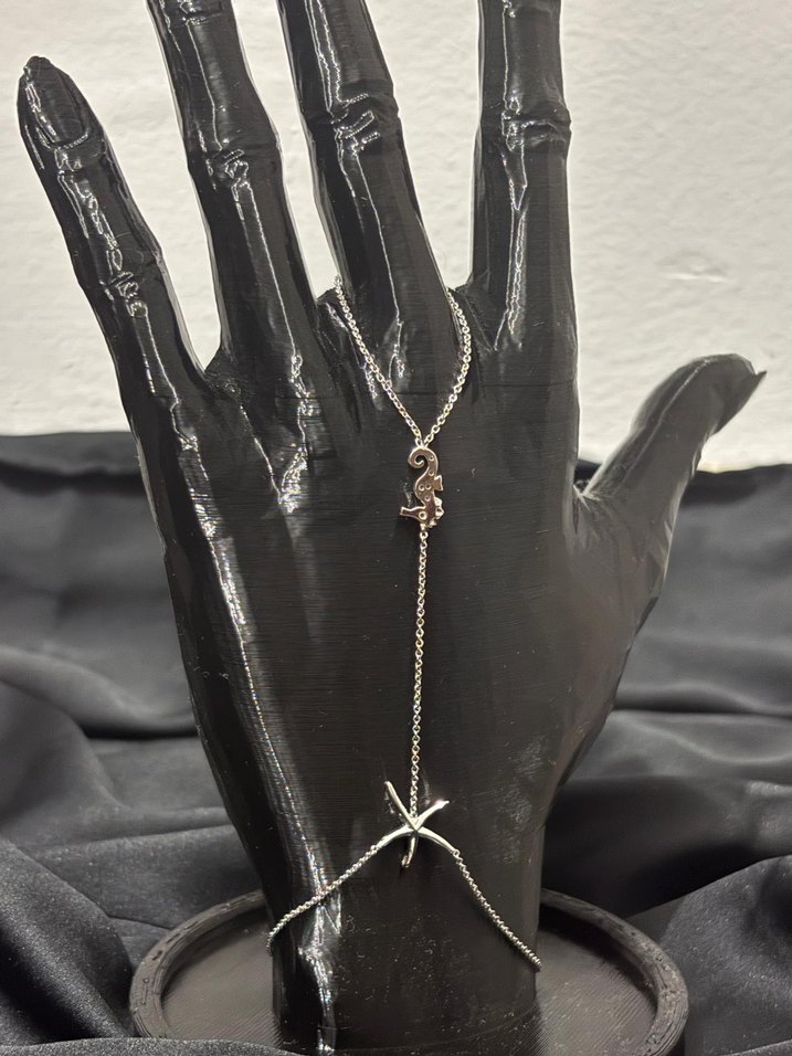 Parlak gümüm renkli, zincir detaylı kadın el zinciri