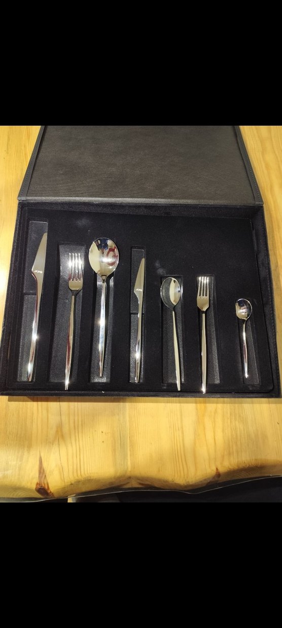 Aryıldız marka 84 parça çatal kaşık bıçak takımı , şık siyah kutuda sunulmuştur. Canlı renkte ve farklı yemek ihtiyaçlarına uygundur.