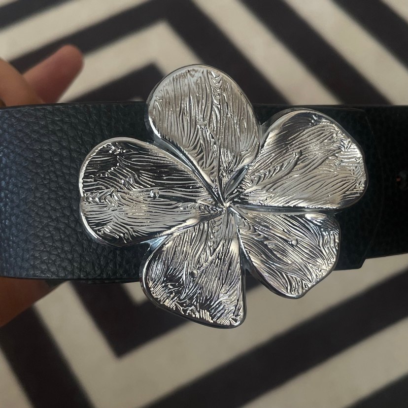 Gümüş Renk Çiçek Tokalı Siyah Kemer