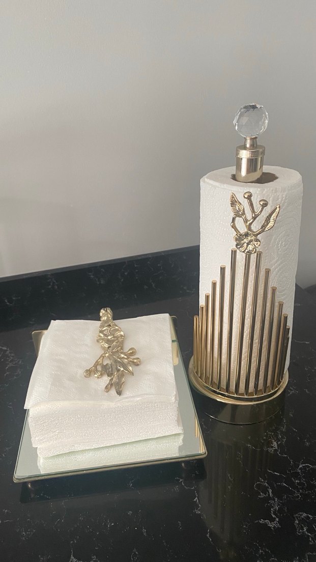 Günüş renk kare tabanı cam peçetelik mutfakta tezgah üstünde kullanılmıştır
