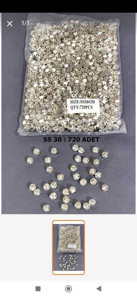 Gümüş Rengi Metal Kasalı Dikme Beyoğlu Taşı (1 Paket) ss30(6mm) 1paket;720 Adet 3D üç paket birlikte satılır/iade kabul edilmez
