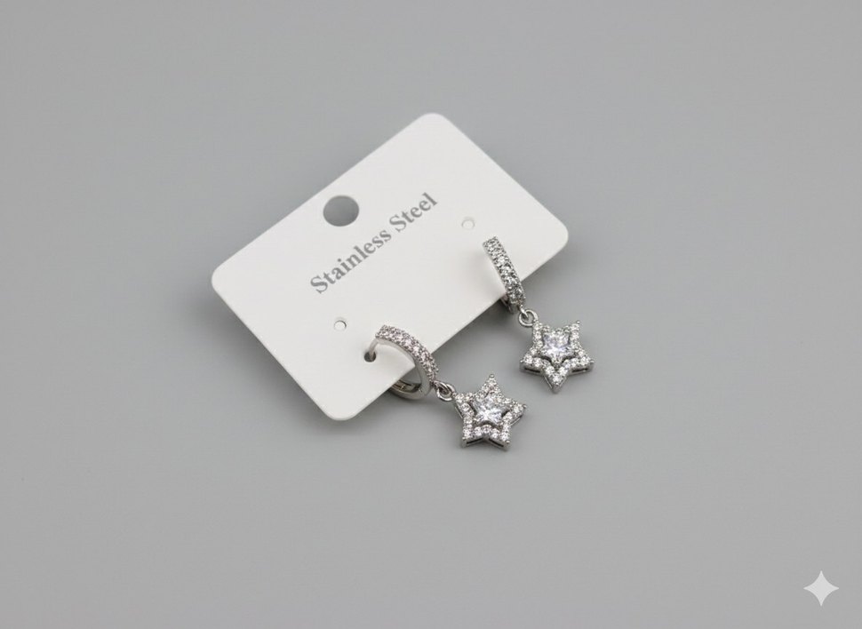 Paslanmaz çelikten gümüş renk mini yıldız küpeler