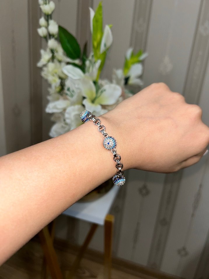 Gümüş Renk Nazar Boncuklu Xuping Bileklik