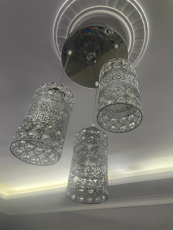 gümüş renk taşlı avize