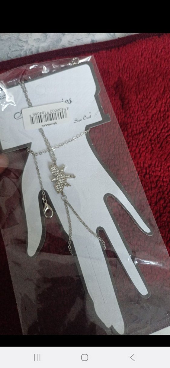 Gümüş renkli, zincir detaylı ve böcek figürlü kadın el zinciri, günlük kullanım için uygun zarif tasarım.