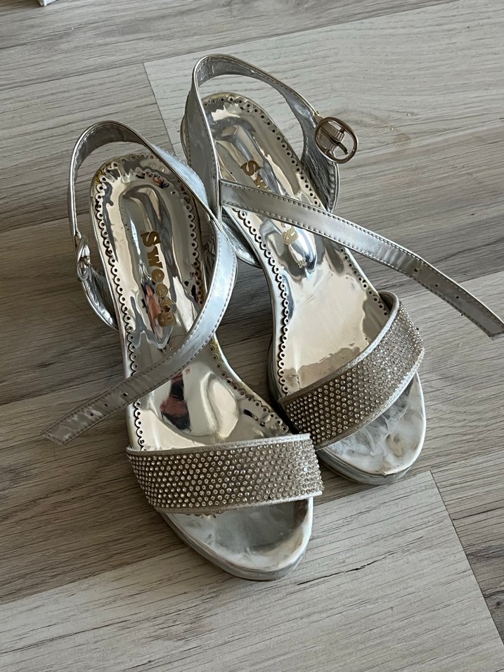 gümüş renkli taşlı kız cocuk topuklu ayakkabı özel günler için şık 33 numara