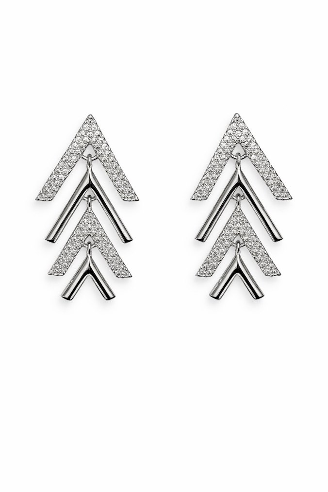 Gümüş renkli küpeler, işlemeli payet detaylarıyla minimalist ve çağdaş tasarım, düğünler için uygun. 14K altın ve rodyum kaplamadır.