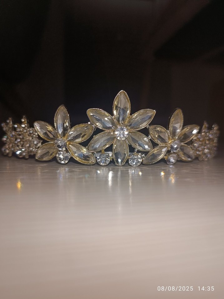Klasik zarafete uygun, gümüş renkli, taşlı çiçek desenli geleneksel gelin tacı. ✨