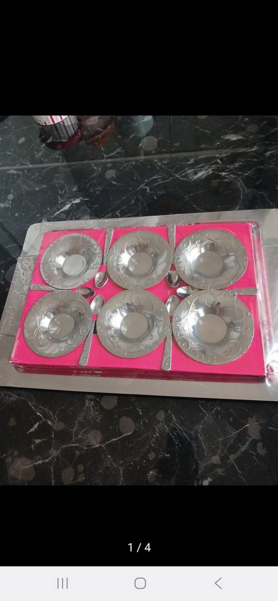 gümüş renkli tepsi 6 çay kaşığı 6 bardak altı