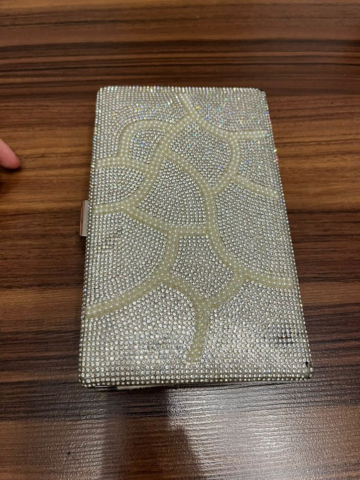 Düğünler için uygun, gümüş renkli, yılan deseni ve boncuklu tasarıma sahip metal kadın portföy çanta. ✨
