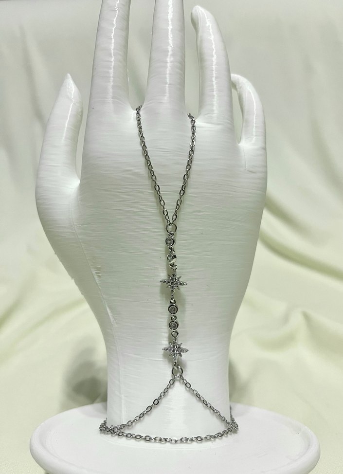 Gümüş Renkli Zincir Detaylı Bohem Kadın El Zinciri şahmeran