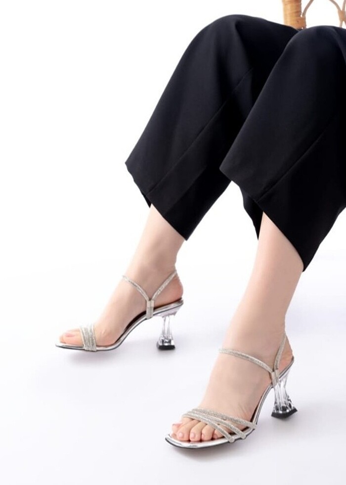 Gümüş sarmal şeffaf topuklu ayakkabı