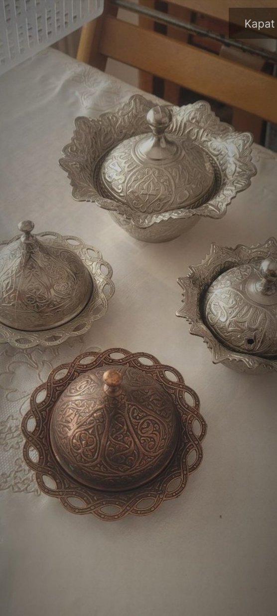 gümüş renkli bakır renkli şekerlikler..hepsi bu fiyattır..tek fiyatı da 250 tl dir.